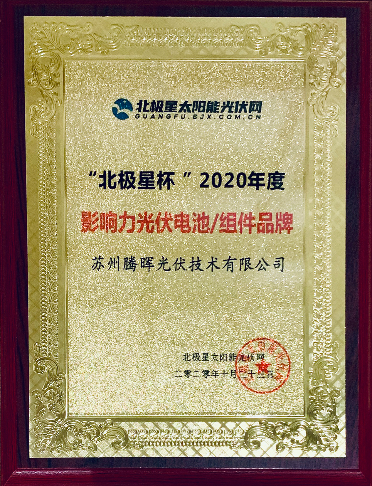 2020年10月23日,“北極星杯”2020光伏影響力品牌評選頒獎典禮在北京舉辦,經(jīng)過激烈角逐,騰暉光伏從260多家入圍企業(yè)中脫穎而出,榮膺2020影響力光伏電池/組件品牌,此外,阿根廷高查瑞315 MW光伏電站項目榮獲“影響力特色光伏應用項目案例獎”。