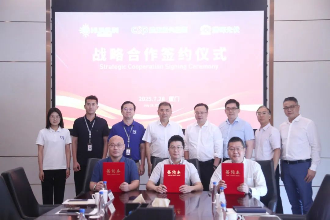 2025年7月28日,廈門建發(fā)新興能源有限公司(以下簡(jiǎn)稱“建發(fā)新興能源”)、蘇州騰暉光伏技術(shù)有限公司(以下簡(jiǎn)稱“騰暉光伏”)與安徽華晟新能源科技股份有限公司(以下簡(jiǎn)稱“華晟新能源”)在廈門建發(fā)集團(tuán)總部簽署三方戰(zhàn)略合作協(xié)議。此次合作的核心在于引入華晟新能源先進(jìn)的異質(zhì)結(jié)(HJT)技術(shù)這一“新質(zhì)生產(chǎn)力”,旨在顯著提升騰暉光伏的技術(shù)實(shí)力與產(chǎn)品競(jìng)爭(zhēng)力,實(shí)現(xiàn)關(guān)鍵突破。廈門建發(fā)股份有限公司(以下簡(jiǎn)稱“建發(fā)股份”)副總經(jīng)理、中利集團(tuán)股份有限公司(以下簡(jiǎn)稱“中利集團(tuán)”)董事長(zhǎng)許加納、建發(fā)新興能源總經(jīng)理、騰暉光伏董事長(zhǎng)黃昶、華晟新能源副總裁梁海彬分別代表三方簽署協(xié)議。建發(fā)股份董事長(zhǎng)林茂、華晟新能源董事長(zhǎng)徐曉華等領(lǐng)導(dǎo)共同見證簽約。