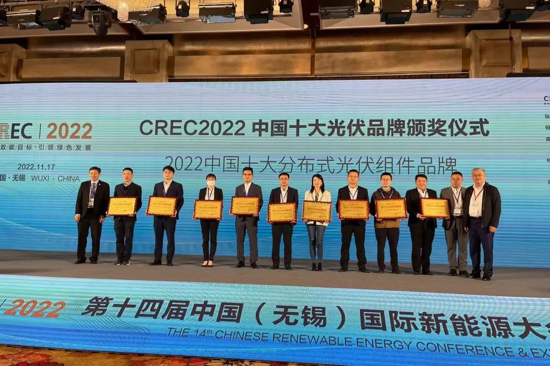 同期,由中國(guó)(無(wú)錫)國(guó)際新能源大會(huì)暨展覽會(huì)(CREC)組委會(huì)舉辦的“中國(guó)十大分布式光伏品牌評(píng)選”活動(dòng)在頒獎(jiǎng)典禮現(xiàn)場(chǎng)正式公布獲獎(jiǎng)企業(yè)榜單,騰暉光伏再次榜上有名,至此,騰暉光伏已數(shù)次榮獲“中國(guó)十大分布式光伏組件品牌”稱(chēng)號(hào)。