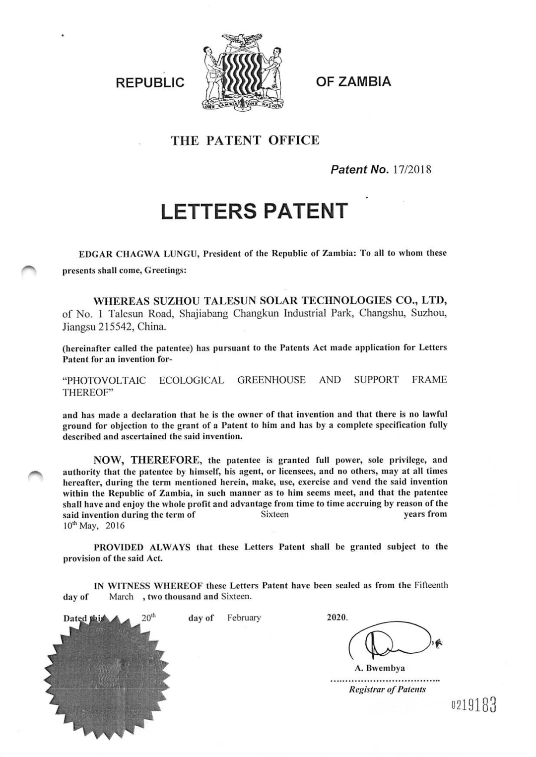 近日,騰暉光伏海外專利布局工作又取得了重要進展,四項光伏產(chǎn)品及系統(tǒng)相關(guān)的PCT專利已完成進入國家階段,其中一項發(fā)明專利進入歐盟,三項發(fā)明專利進入非洲。這為騰暉光伏核心產(chǎn)品及服務(wù)能夠進入歐盟和非洲等地區(qū)的光伏市場提供了必要的技術(shù)保障。騰暉光伏將積極響應(yīng)國家“一帶一路”發(fā)展號召,依托自身在品牌、技術(shù)等方面的既有優(yōu)勢,積極開展政府間國際科技合作攻關(guān)以及新產(chǎn)品國際市場開發(fā),促進一帶一路沿線國家在新能源等領(lǐng)域的深入合作力度,提高各國之間在資源和市場的互聯(lián)互通、共享程度,通過綠色能源為一帶一路沿線國家的能源結(jié)構(gòu)改革、經(jīng)濟發(fā)展和生態(tài)環(huán)境改善做出貢獻。截至目前騰暉累計申請核心專利400多件,授權(quán)200多件,并建立了良好知識產(chǎn)權(quán)管理體系,為公司的全球化競爭提供了良好的知識產(chǎn)權(quán)保障。